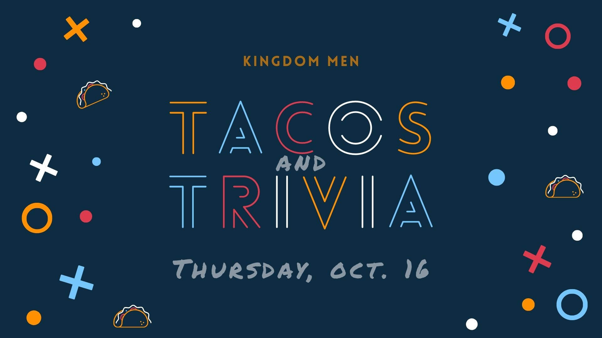 Join the men of Northside for tacos and trivia on Thursday, Oct. 16. Cost is $5/guy and will include your dinner.
